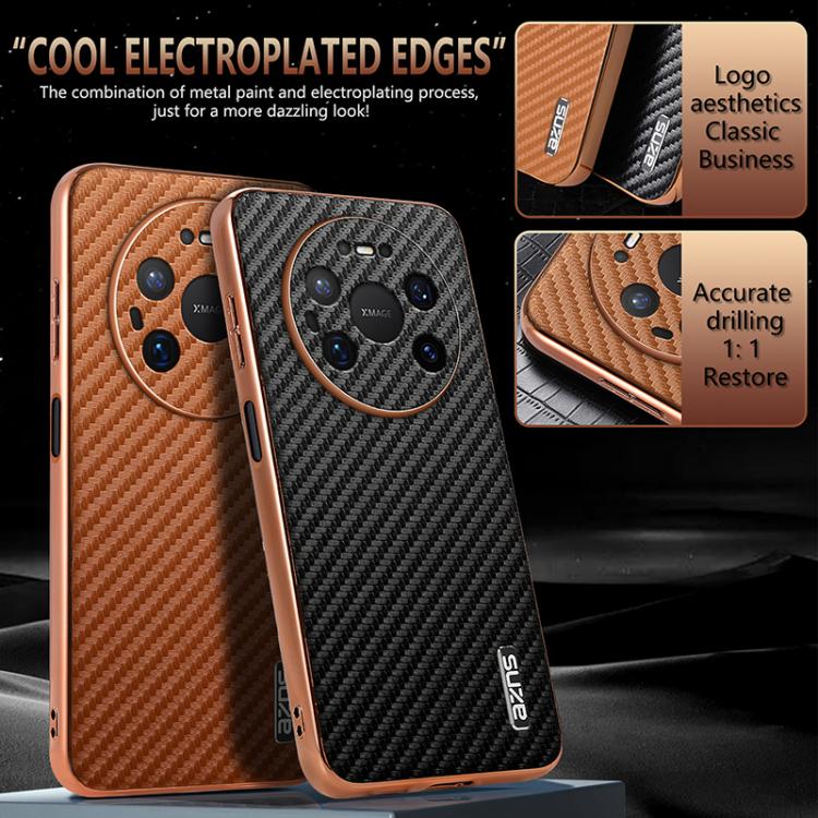 AZNS Electroplated Edge Carbon Fiber Texture Phone Case, For Huawei Mate 80 Pro Max, For Huawei Mate 80 Pro / Mate 80, For Huawei Pura 80 Ultra 5G, For Huawei Pura 80 Pro / Pro+ 5G, For Huawei Pura 80 5G, For Huawei nova 14 Ultra, For Huawei nova 14 Pr…