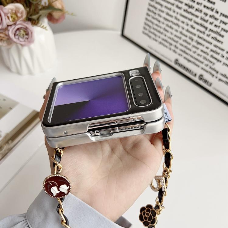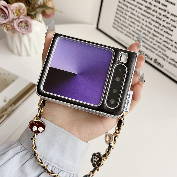 2. Adorned with a classic camellia detail inspired by French chic aesthetics, adding a subtle touch of luxury and sophistication.