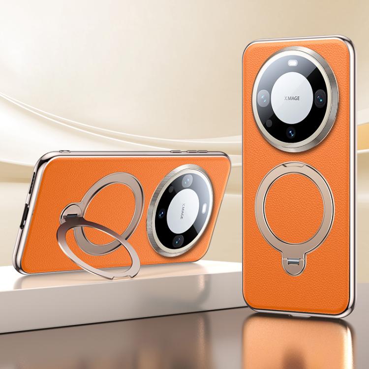 Skin Feel Leather Texture Cooling MagSafe Phone Case with 360 Degrees Rotating Holder, For Huawei Mate 60 Pro+, For Huawei Mate 60, For Huawei Mate 60 Pro